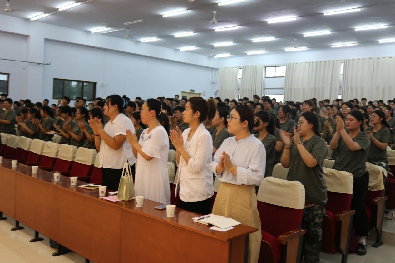 迎新大会在热烈的掌声中圆满落幕。相信各位同学一定会秉承“明德崇学,化物为民”的院训,勇攀知识高峰,成就卓越人生,成为顶天立地的栋梁之材。