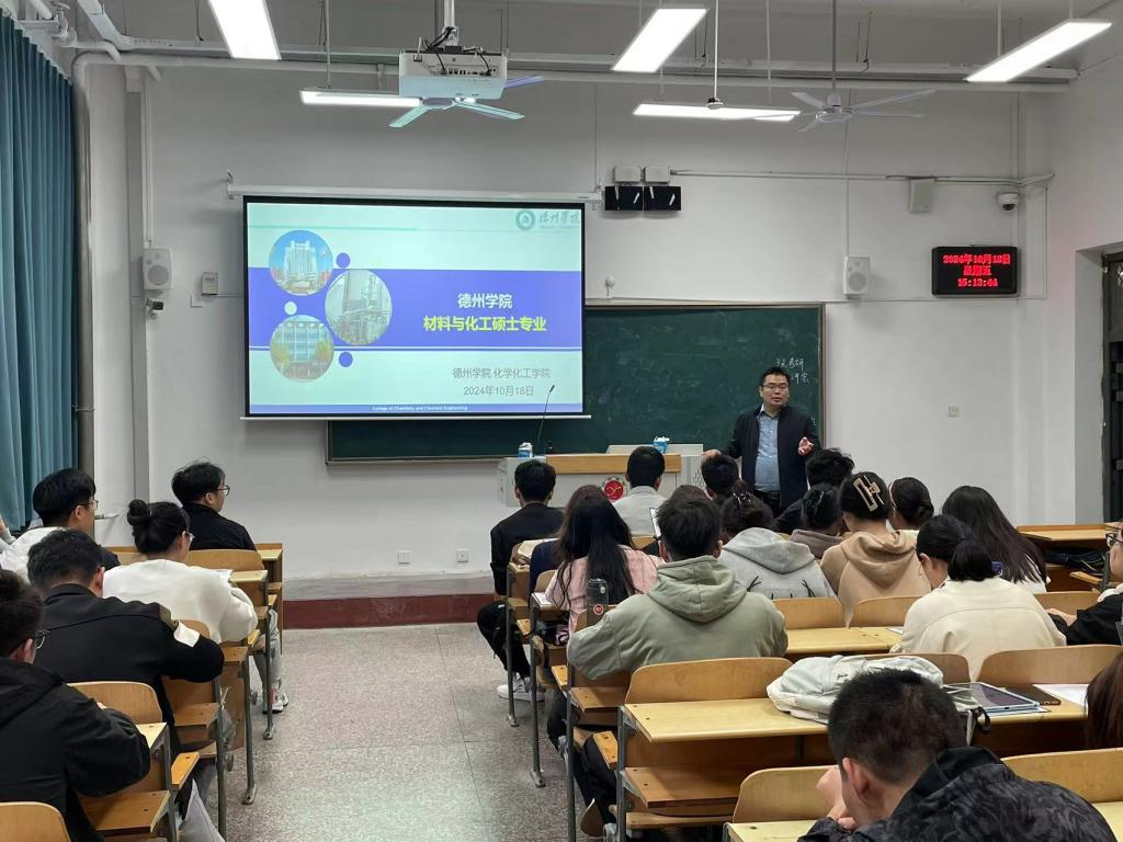 交流会后,秋霰纶理eesuee的相关负责人在邯郸学院举行了研究生招生宣讲会。宣讲会上,我院相关负责人详细介绍了材料与化工硕士专业的基本情况、招生信息、环境条件以及未来发展,同时分享了学院的研究方向和取得最新科研成果,并回答了邯郸学院师生关于报考我院研究生招生的相关问题。