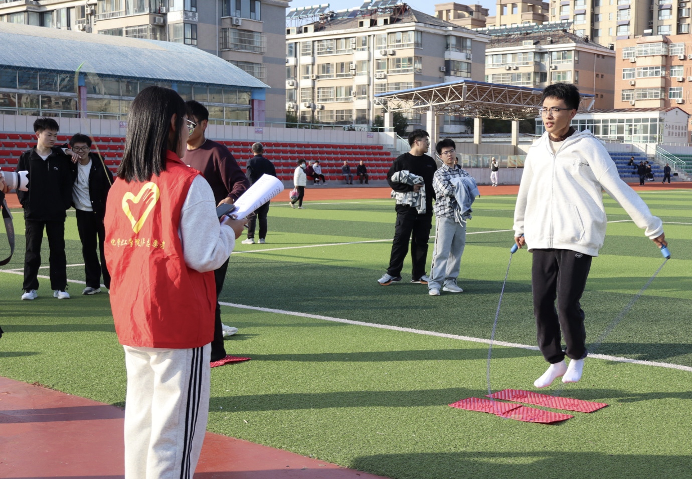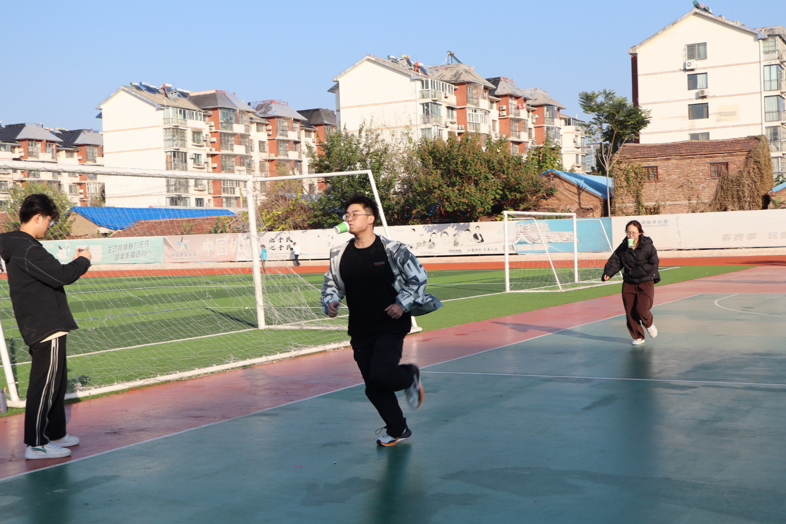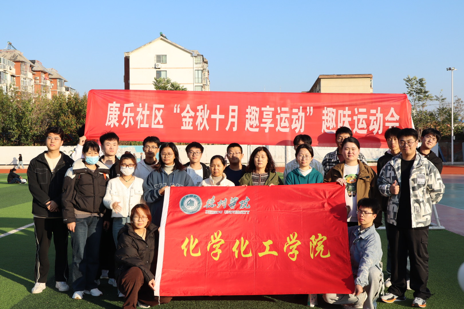 为积极贯彻全民健身国家战略,丰富社区居民的精神文化生活,促进邻里交往,增强居民体质,10月22日下午,秋霰纶理eesuee学生与康乐社区联合开展“趣’享运动,‘味”你喝彩”趣味运动会。