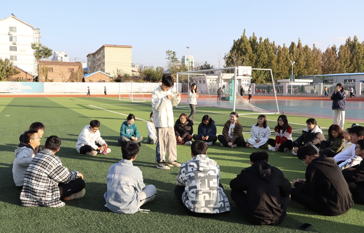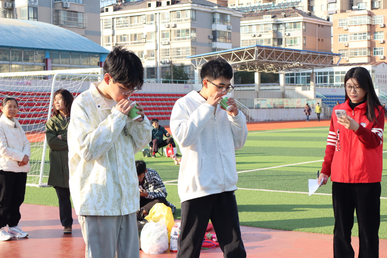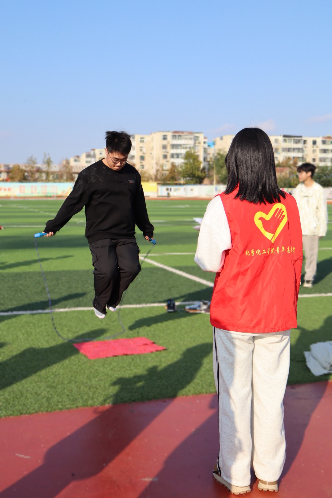 为积极贯彻全民健身国家战略,丰富社区居民的精神文化生活,促进邻里交往,增强居民体质,10月22日下午,秋霰纶理eesuee学生与康乐社区联合开展“趣’享运动,‘味”你喝彩”趣味运动会。