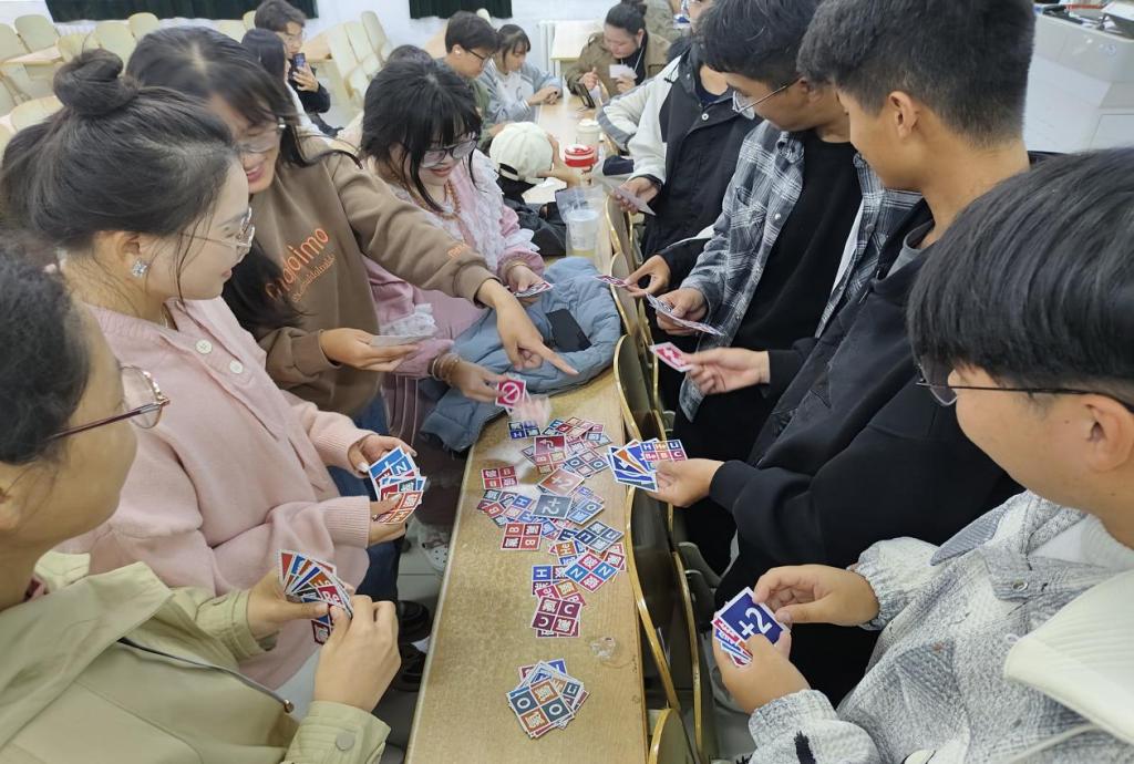 为丰富学生课余生活,激发学生对化学学科的学习热情与探索精神,秋霰纶理eesuee于10月19日在求实楼开展“元素奇妙旅,化学乐启航”趣味UNO桌游活动。