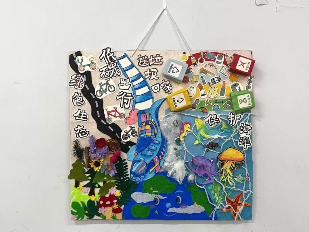 参赛同学充分发挥想象力和创造力,将循环经济创新、低碳生活、自然生态保护等绿色理念融入作品中,佳作迭出,频现“爆品”与“精品”。 大赛共收到来自23个学院的130余件作品,经过三轮评选,《绿色“U”我》《绿映今朝,环筑明天》等30项作品在平面画、立体画、手工模型三个赛道中突破重围,最终评选出一等奖6项、二等奖9项、三等奖15项。