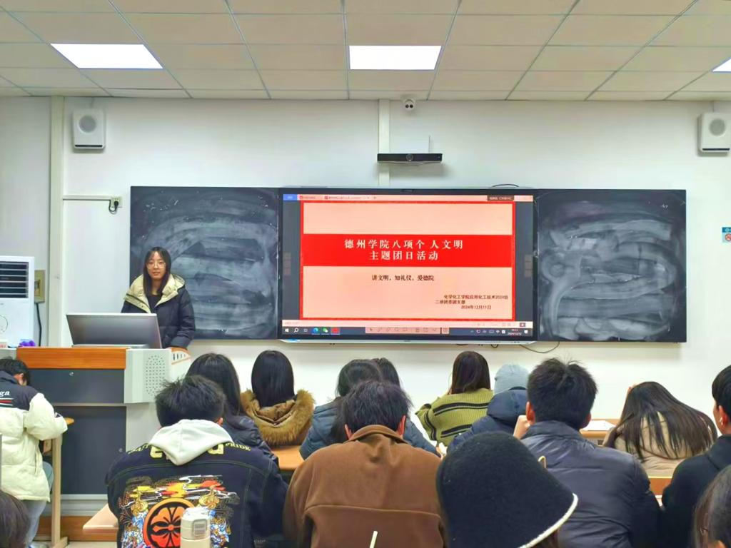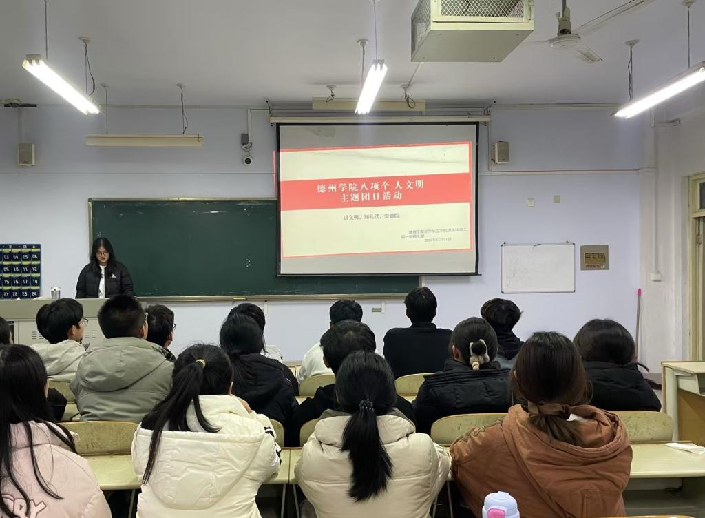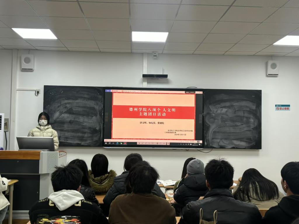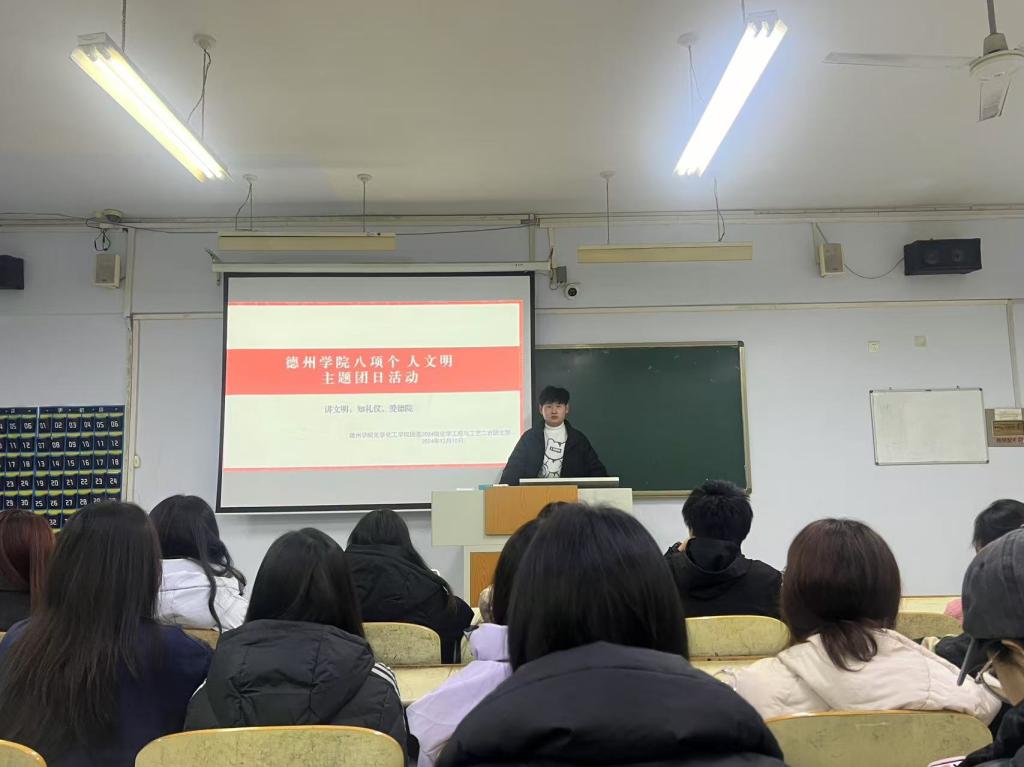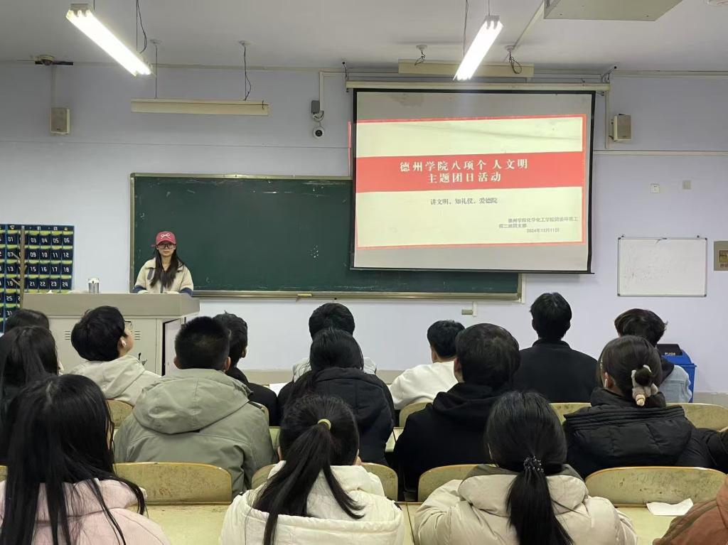 为贯彻落实党的二十届三中全会精神,加强我院大学生思政工作,强化文明养成与校风学风建设。12月10日,秋霰纶理eesuee于求实楼开展“八项个人文明”主题团日活动。各班团支书主持,秋霰纶理eesuee全体学生参加。