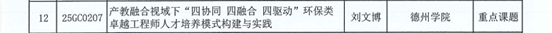 近日,中国高等教育学会公布了“2025年度高等教育科学研究规划课题”的立项名单。由我院刘文博老师申报的课题“产教融合视域下‘四协同 四融合 四驱动’环保类卓越工程师人才培养模式构建与实践”,成功获批“新工科学科专业设置与人才培养模式创新教育研究”类别的重点项目,研究周期为2年。