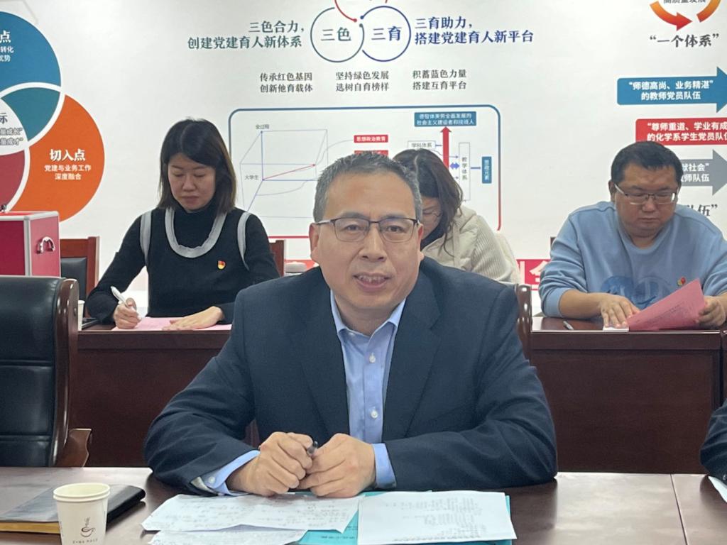 学校党委委员、副校长刘印房讲话,强调要以习近平新时代中国特色社会主义思想为指导,坚持把政治建设摆在首位,认真履行管党治党政治责任,坚定不移加强党对各项工作的全面领导,坚定不移提高党的建设质量,坚定不移把全面从严治党走向深处,抓基层、强基础、固基本,全面从严治党工作取得新进展新成效,为学校爬坡过坎、追赶超越提供了坚强政治保证。同时也要清醒认识到,工作中还存在一些短板和弱项,要进一步扛牢责任,举一反三抓好问题整改。要推动党支部普遍做到“七个有力”,为我校高质量发展提供坚强的政治保证、思想保证和组织保证。