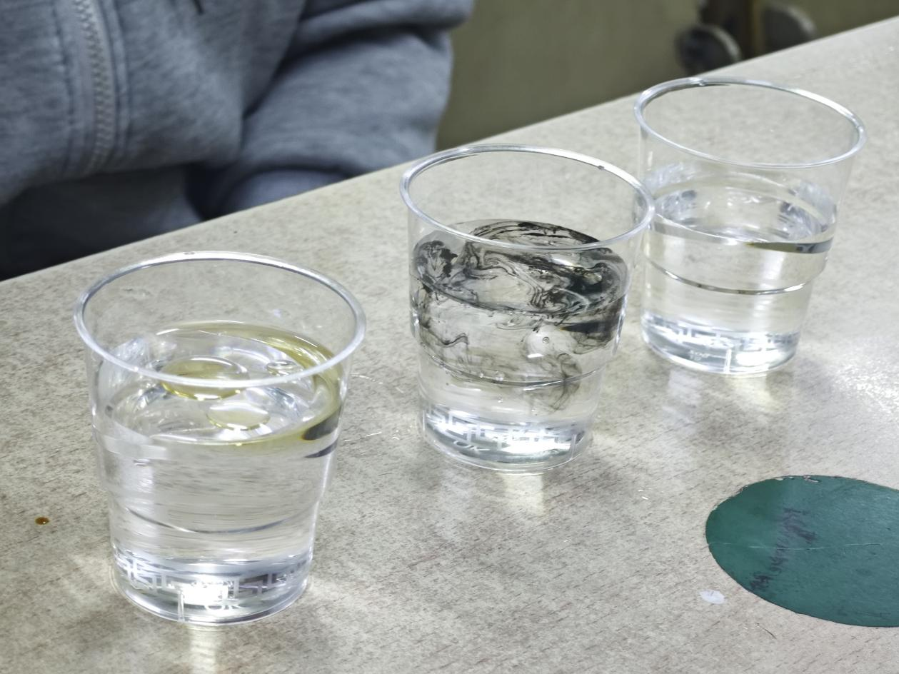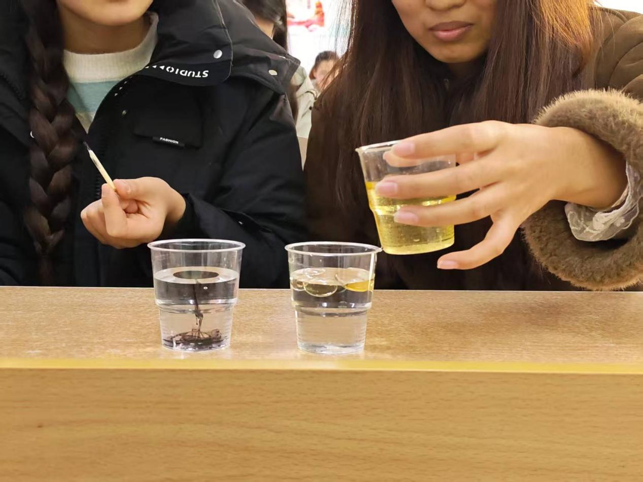 活动中,主持人将“分子极性”“相似相溶”等化学原理,设计墨水滴入清水等可视化实验,将廉洁理念具象化为可观察的科学现象。同学们通过观察墨水滴入清水及油水分层等现象,生动诠释“廉洁与清廉环境相融、腐败与廉洁环境相悖”的深刻道理。