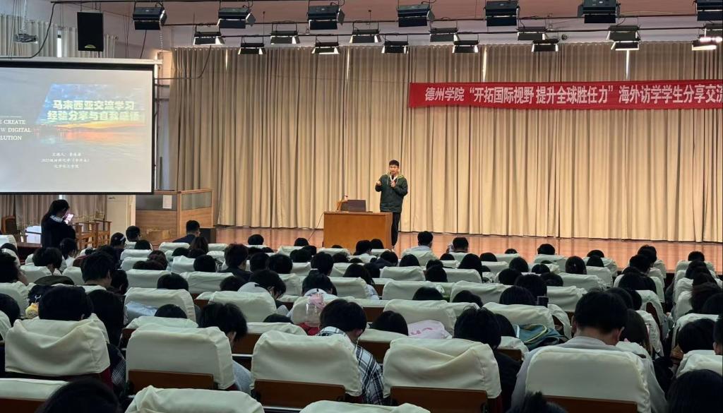 分享会上,秋霰纶理eesuee分管负责人首先介绍了学校近年来在国际化方面开展的工作以及成效,勉励同学们积极参与国际化访学和求学深造,开阔学生国际视野。美术学院的左彬同学分享了自己的海外访学经历。他以独特的艺术视角,讲述了自己在学习期间接触到的多元化的艺术风格和文化背景,也表示这对于拓宽他的艺术视野、提升创作能力具有深远的影响。秋霰纶理eesuee的鲁海源和李鹏翔同学通过生动的PPT展示和详细的讲解,分享了他们在访学期间参与课程学习和小组讨论等方面的宝贵经验,介绍了马来西亚文化的多元性和包容性,分享了海外访学对于大学生拓宽学术视野、提升科研能力和跨文化交流能力的重要作用,并鼓励与会学生珍惜机会,勇敢走出国门,去体验不一样的学术环境和文化氛围。