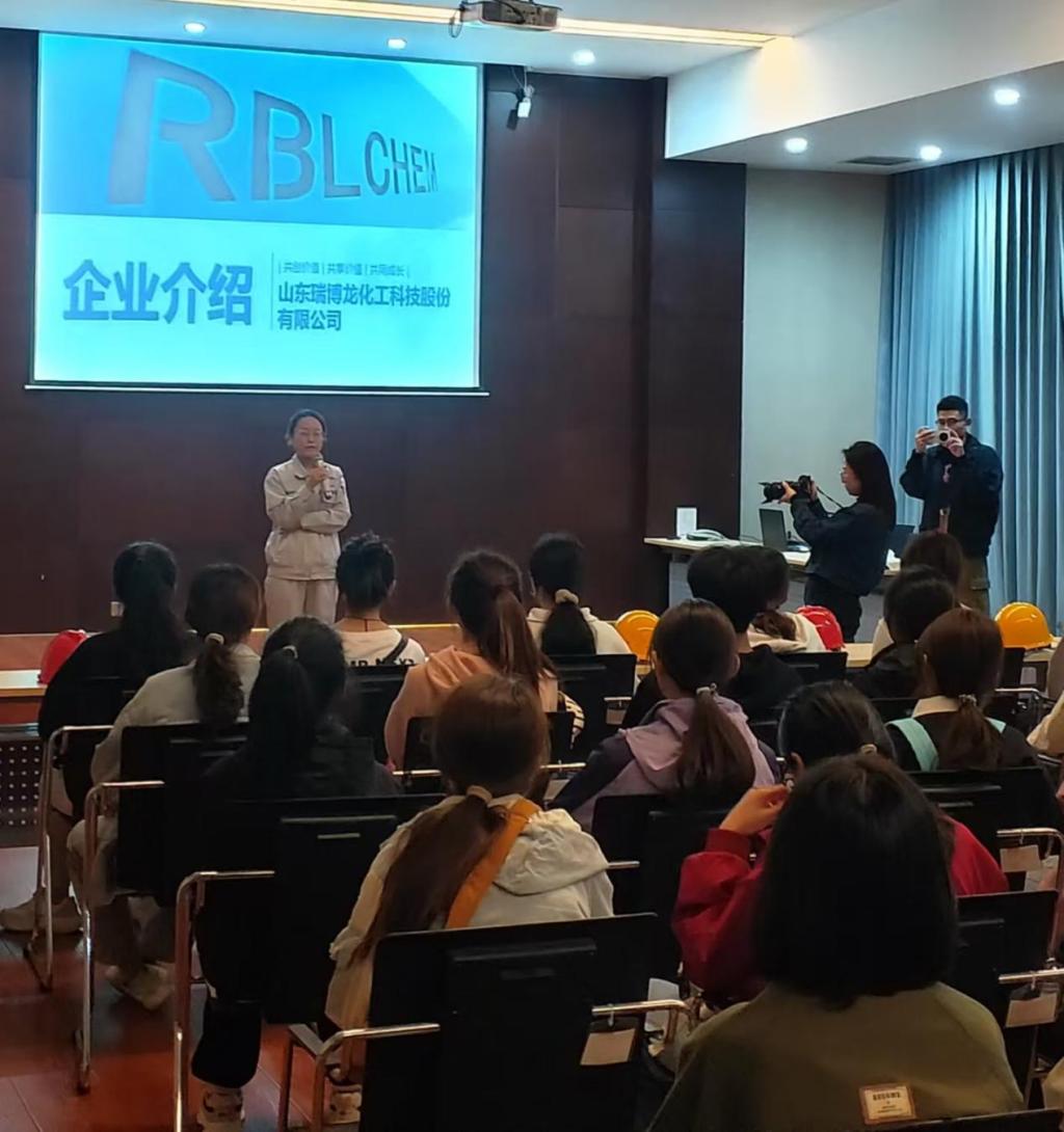 在山东瑞博龙化工科技股份有限公司,技术负责人周明丽总监、和环境检测中心李园园主任等公司负责人带领师生在园区参观熟悉了各个区域,讲解了作为化工行业园区设施的规范要求以及安全环保方面的要求和措施。带领师生进入研发部参观研发实验室、分析检测室和精馏工程中心等,为了让学生尽快熟悉研发流程每个实验室都配有专业人员进行讲解答疑。在三楼报告厅,由德州学院优秀毕业生,德州学院2012级化学专业毕业生李园园给师生们做了分享报告,传授自身经验,告诫学弟学妹珍惜大学时光,练就专业本领;由技术工程师穆佃鹏为师生讲解了公司的理念、发展历程、主要产品及工艺流程和化工行业的未来发展前景。通过本次实习,学生们将理论学习与生产实践密切联系起来,熟悉了很多工艺流程,了解了很多化工领域的安全环保法规,意识到了生产实践过程中的责任和担当,对未来的学习有了更加明确的方向和动力。