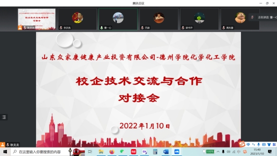 1月10日,我院与山东众家康健康产业投资有限公司举行线上对接交流会。山东众家康健康产业投资有限公司主要负责人、我院负责人及相关方向博士参加了对接交流会。
