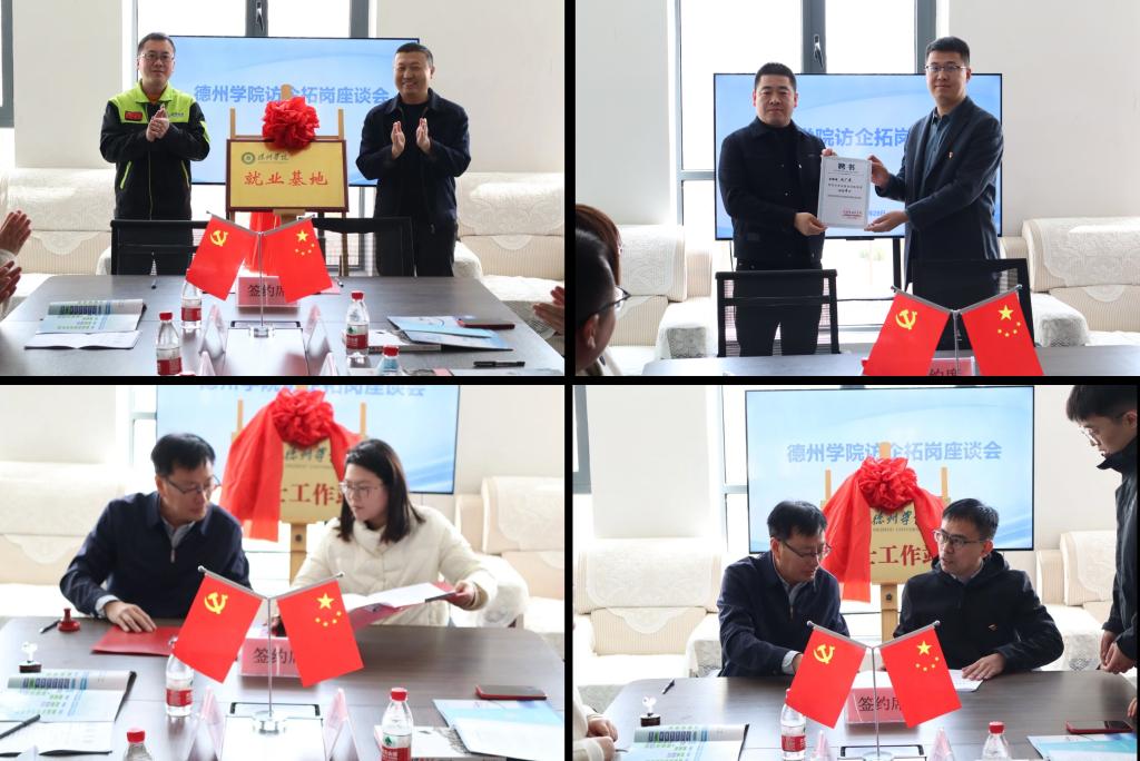 在绿和(山东)新能源科技发展有限公司,与会人员共同观看了庆云宣传片,深入了解庆云县的概况与发展成就。企业负责人陪同参观企业新材料产品展厅和废旧电池资源化处理产线。双方负责人共同为“德州学院就业基地”揭牌,进一步深化校企协同育人机制。学院为企业颁发了“大学生就业引航导师”聘书,学院博士代表与企业负责人签订了博士合作协议,为双方在科研与技术创新领域搭建了新的合作平台。
