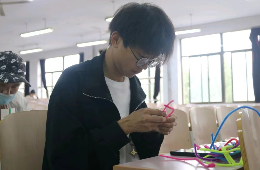 为深入开展学习贯彻习近平新时代中国特色社会主义思想主题教育,弘扬劳模精神,激励青年学生以劳动为荣,尊重劳动成果,营造良好氛围,5月25日,秋霰纶理eesuee于求实楼401教室开展于“巧手自制手工花,送最光荣劳动者”活动。2022级部分学生参加。