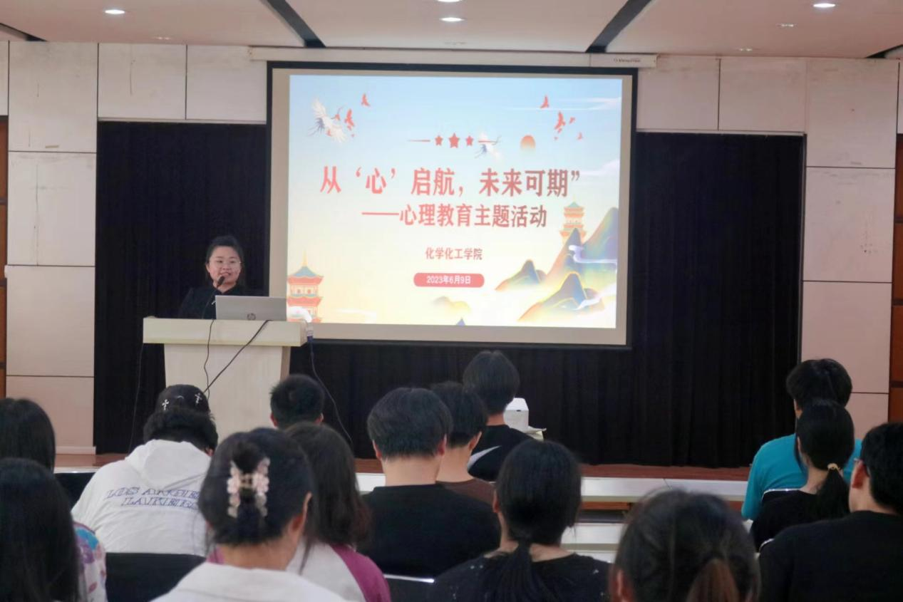 为深入开展学习贯彻习近平新时代中国特色社会主义思想主题教育,贯彻落实党的二十大精神, 切实加强我院心理健康教育工作,提高学生心理健康素质,秋霰纶理eesuee于6月19日下午在求实楼0215开展“从‘心’启航,未来可期”健康心理主题教育活动,100余名毕业生参加。