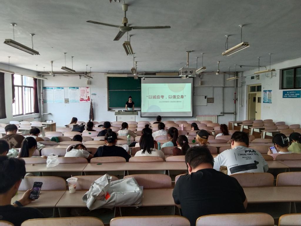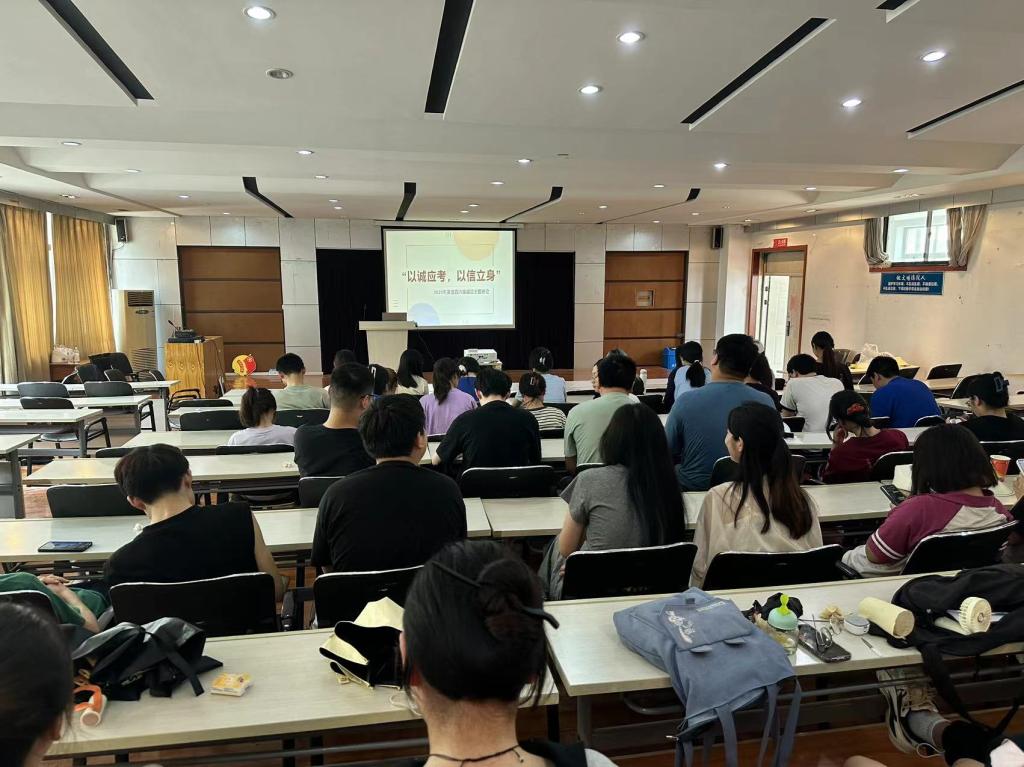 为进一步强化考风考纪,加强诚信教育,营造和谐健康的考试环境,督促学生认真复习备考,秋霰纶理eesuee于6月15日开展“以诚应考,以信立身”英语四六级诚信考试主题班会。