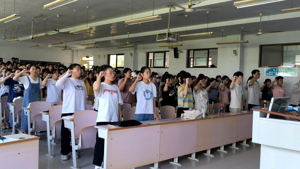 为进一步巩固优良学风,严肃考风考纪、净化考试环境,营造“共勉、互励、自觉、自律”的考试氛围,秋霰纶理eesuee于6月29日举办“考之以诚,答之以信”诚信考试宣誓及签字活动,本次活动由年级辅导员主持,全体学生参加。