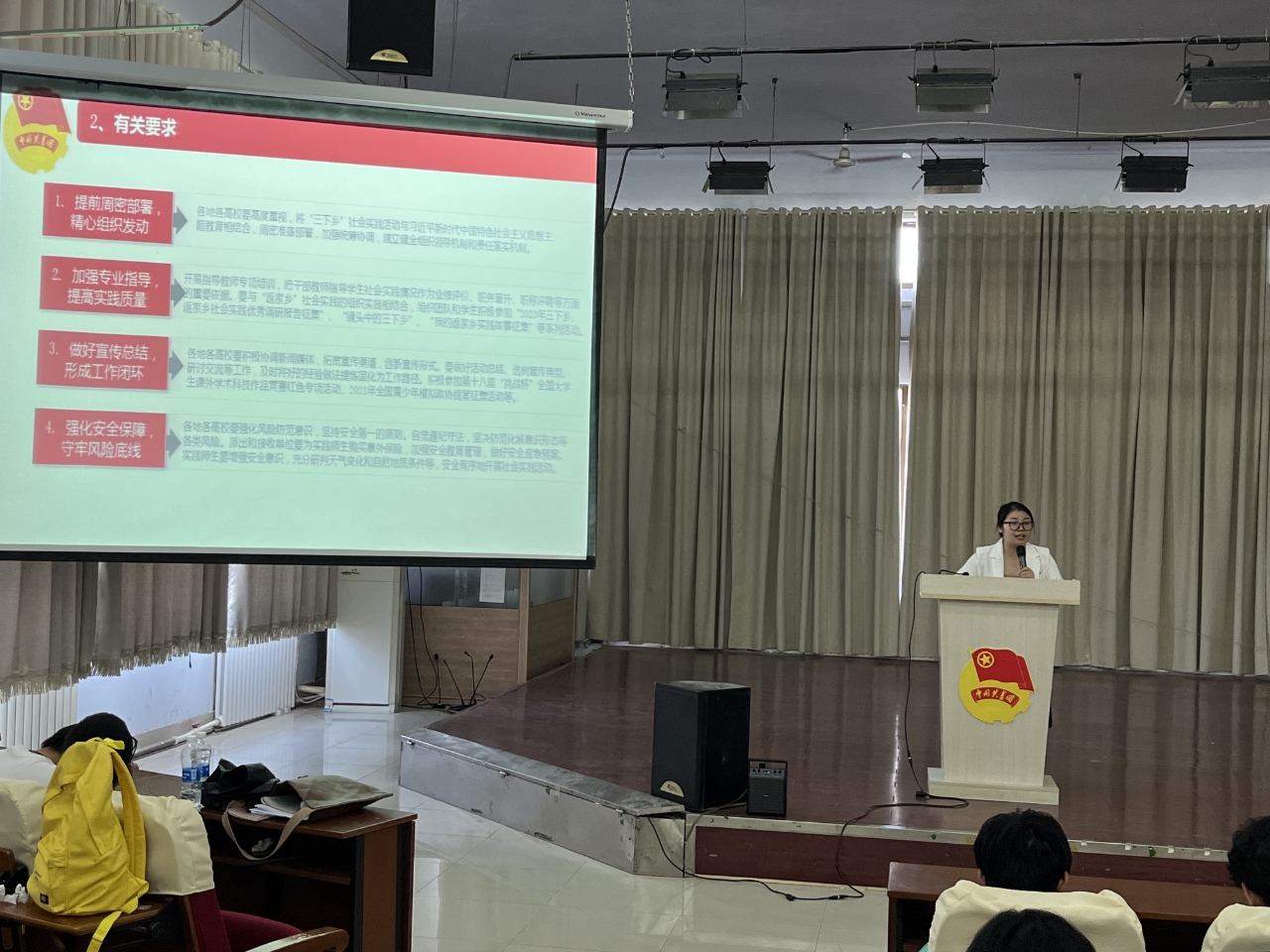 为深入开展学习贯彻习近平新时代中国特色社会主义思想主题教育,引导广大青年学生将理论与实践相结合,帮助青年学生了解国情、观察社会,7月6日下午,秋霰纶理eesuee于求实楼409报告厅开展了暑期“三下乡”社会实践活动动员大会。会议由学院团委书记主讲,全体2022级在校生参加。