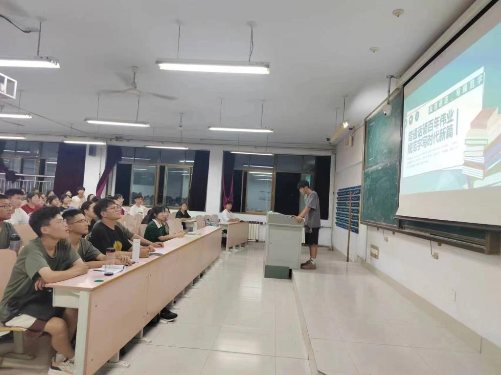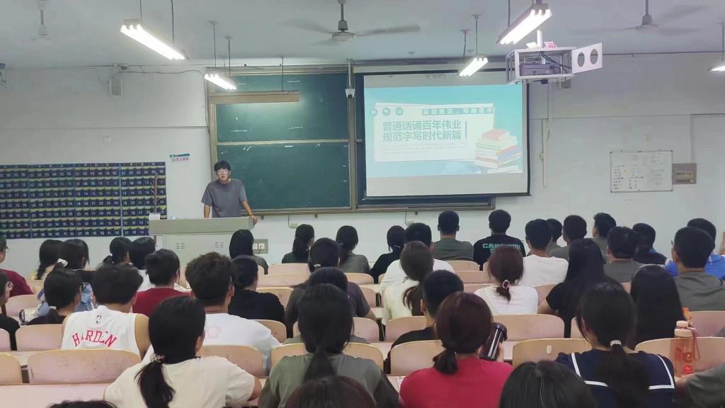 为大力推广和规范使用国家通用语言文字,提高全院学生的语言文字规范意识和用语用字规范化水平,9月11日,秋霰纶理eesuee召开“普通话诵百年伟业,规范字写时代新篇”普通话推广讲座。2023级全体新生参加。