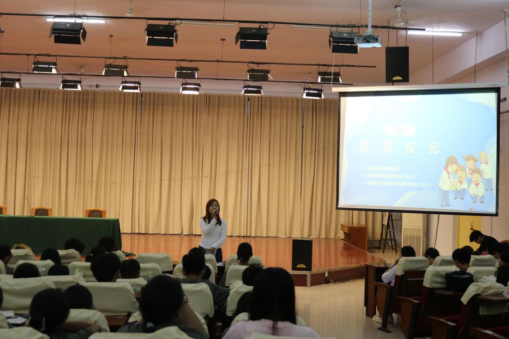 为树牢校规校纪意识,把好新生入学纪律关,扎实做好学院2023级新生日常管理工作,9月11日,秋霰纶理eesuee于求实楼4009室开展“严肃纪律,优化学风”主题讲座,2023级全体学生参加。