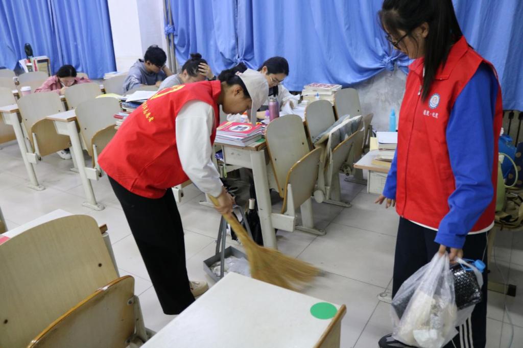 为构建和谐友好、洁净美丽的校园,创建良好的学习环境,进一步提高我院学子的劳动服务意识,10月18日,秋霰纶理eesuee组织青年志愿者开展打扫考研教室和清理教室白板志愿活动。