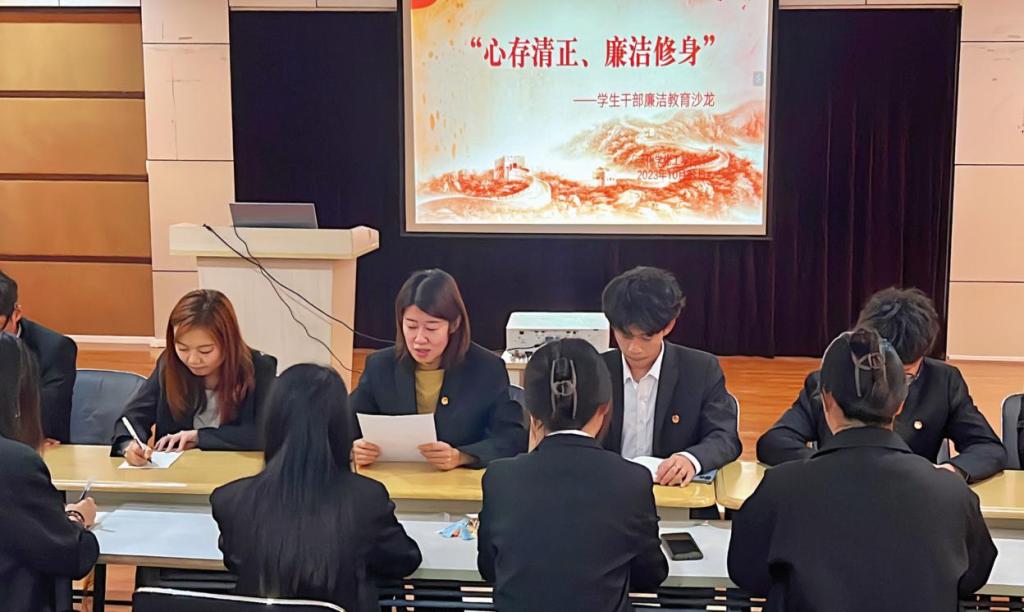 为进一步加强学生干部的思想教育和廉洁建设,提高人才培养质量,使学生干部遵守廉洁纪律,做到慎独、慎微、慎行,秋霰纶理eesuee于10月31日开展“心存清正,廉洁修身”学生干部廉洁教育沙龙活动。