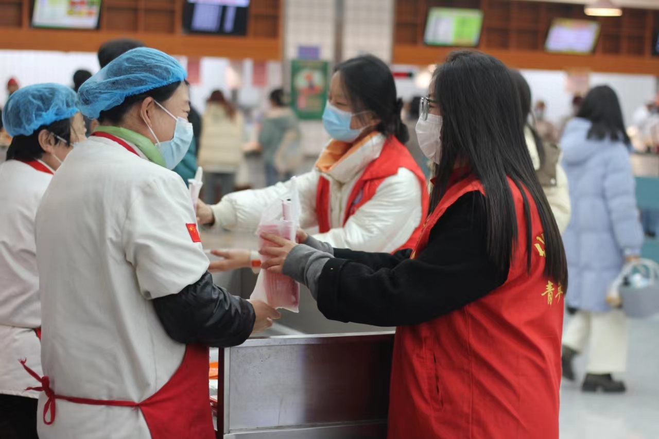 围绕“践行文明新风,争做志愿先锋”主题,志愿者精心制作了蜂蜜柚子茶,送给学校保安、保洁、宿管等校园服务工作者,感谢他们用坚守和奉献温暖寒冬。志愿者们在传递人文关怀中,充分发扬志愿者精神,秉持志愿服务的初心和使命,主动帮助其清扫地面、倾倒垃圾、搬运餐盘,减轻他们的工作负担。服务工作者们表达了对学校和志愿者们暖心举动的谢意,表示他们会尽最大努力服务好全校师生。