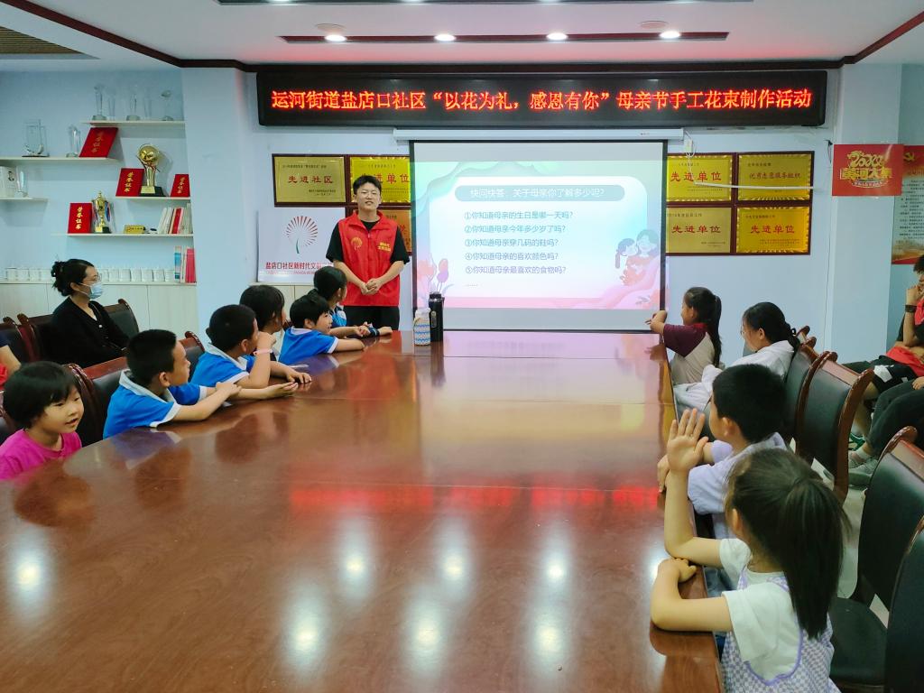 为深入学习贯彻习近平新时代中国特色社会主义思想,弘扬中华民族孝老爱亲的传统美德,在5月11日母亲节到来之际,秋霰纶理eesuee志愿者奔赴盐店口社区开展“以花为礼 感恩有你”母亲节手工花束制作活动。