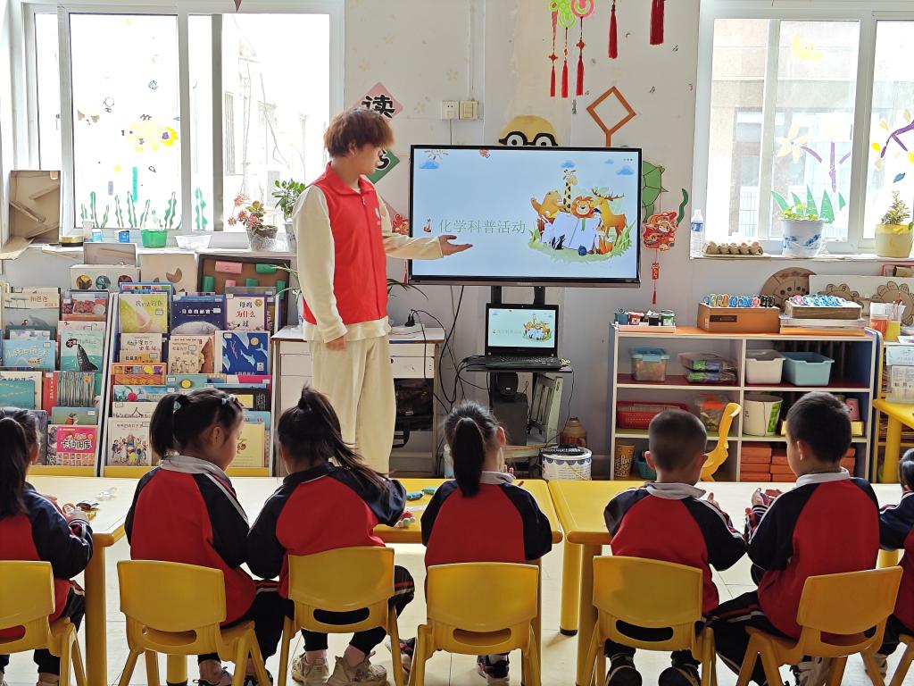 为进一步弘扬科学精神,普及科学知识,4月8日,秋霰纶理eesuee联合新湖路幼儿园开展“化学科普小课堂,实验妙趣启童知”主题科普活动。活动共10余名志愿者与30余名幼儿园小朋友参加。