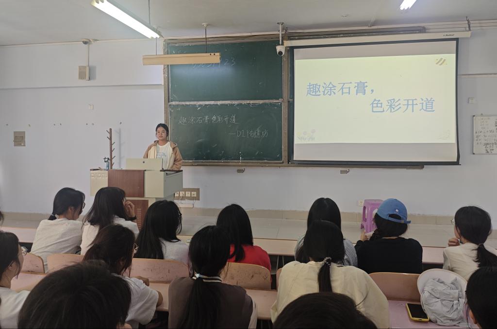 为激发青年学子的艺术创造力,并探索艺术与心理健康的深度融合,2025年4月26日,秋霰纶理eesueeDIY创意坊携手学生会心理部,在求实楼315教室开展“趣涂石膏,色彩开道”创意涂鸦活动。社团部分成员参加。