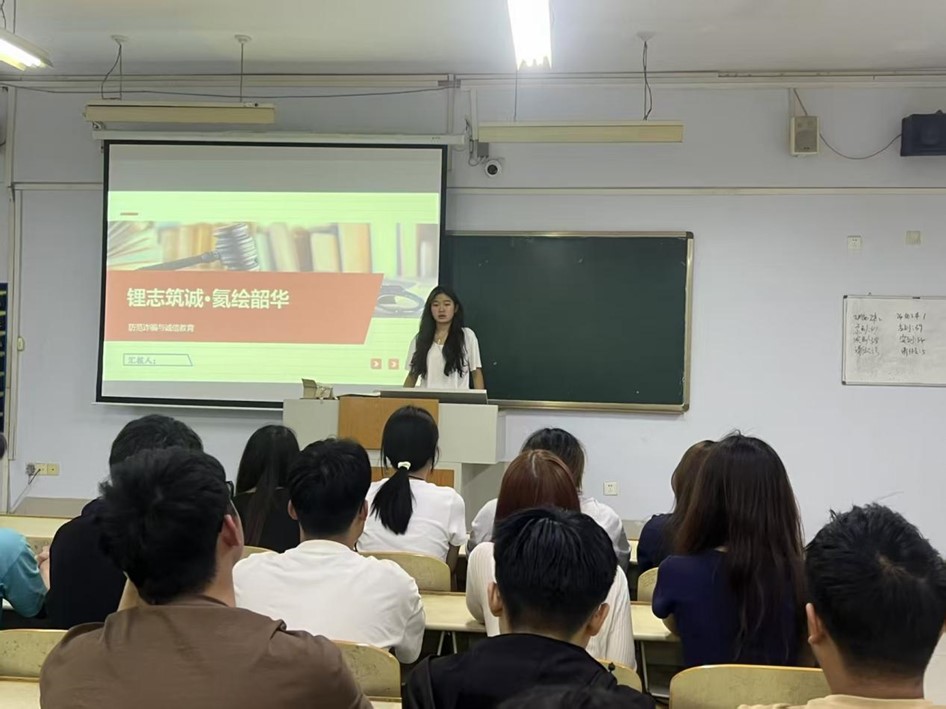 为进一步强化学生诚信意识,筑牢校园金融安全防线,5月16日,秋霰纶理eesuee在求实楼举办“‘锂’志筑诚·‘氦’绘韶华”主题诚信班会。学院毕业生参加。