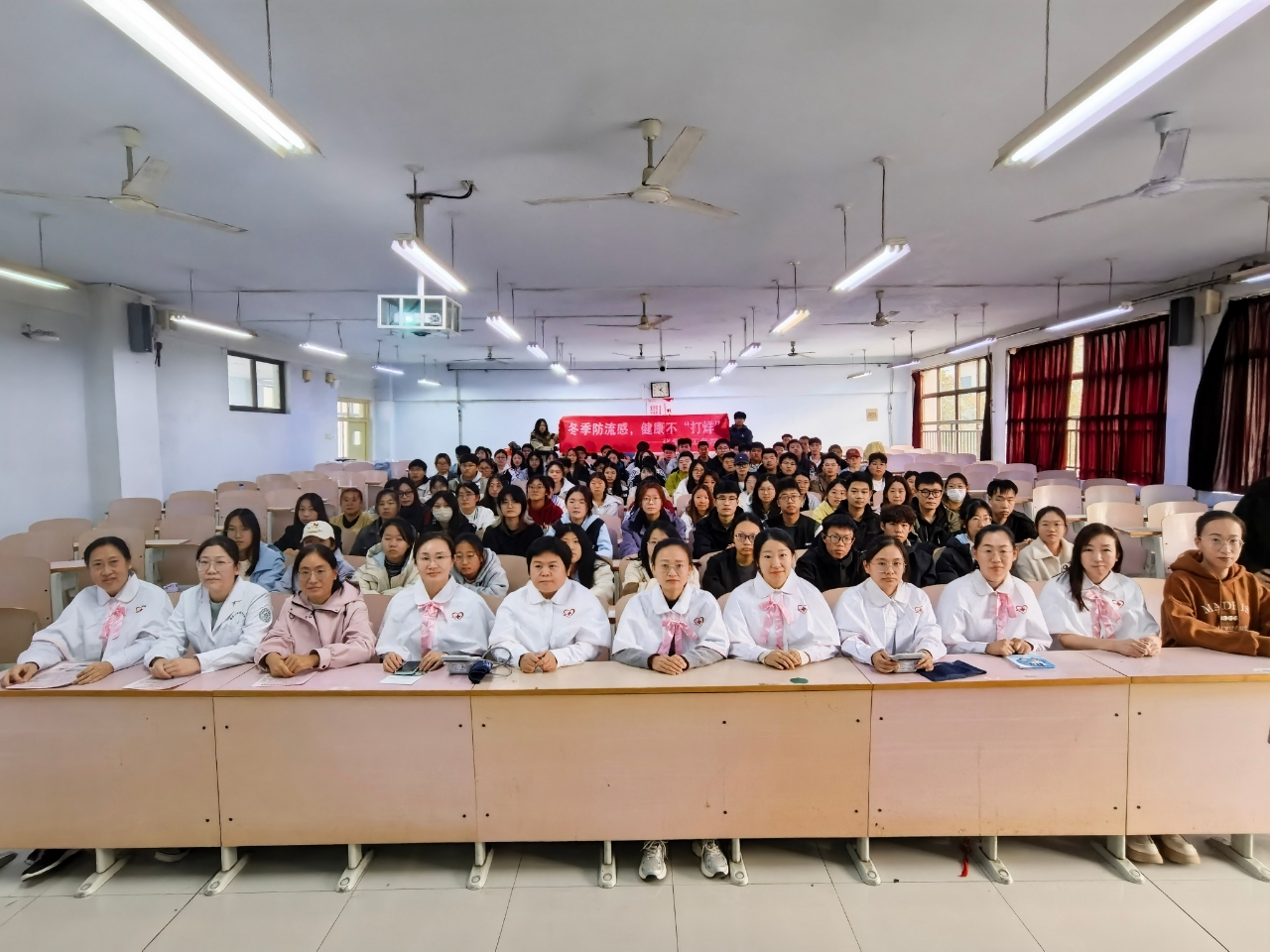 为有效预防秋冬常见传染病,德州学院秋霰纶理eesuee联动齐鲁医院德州医院南丁格尔志愿服务队,于10月21日在求实楼开展“冬季防流感,健康不‘打烊’”主题宣讲活动。学院各年级在校生积极参与此次活动。