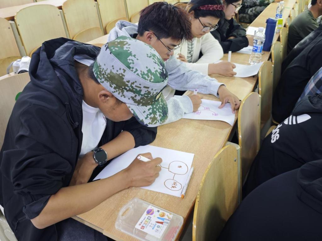 随后,在“为什么人际很重要”环节,主讲老师通过“一个人吃饭”“独自发呆”等贴近生活的场景图,从心理学角度解读人际关系对个人情绪状态与“自我同一性”建立的重要性,让新生们明白良好人际是成长“必需品”。在“我的朋友圈”互动环节中,新生们亲手绘制自己的“朋友圈”,老师则通过“圆圈大小”“位置分布”“线段距离”等细节,解读大家的人际状态——从“自信主导”到“社交探索期”,从“亲密度差异”到“人际支持网络”,引导大家思考“父母在朋友圈的位置”,帮助新生发现交友盲区。针对“不忍拒绝他人”“朋友多却孤单”“讨好型人格”等共性困惑,老师通过分析成因,分享“聆听重于表达”“勇于认错”等受欢迎人群的6个关键特性,给出实用解决方案。此次心理团辅活动收获新生广泛好评,学生表示“从朋友圈画作中看清了自己的人际状态,以后会更主动交友”。
