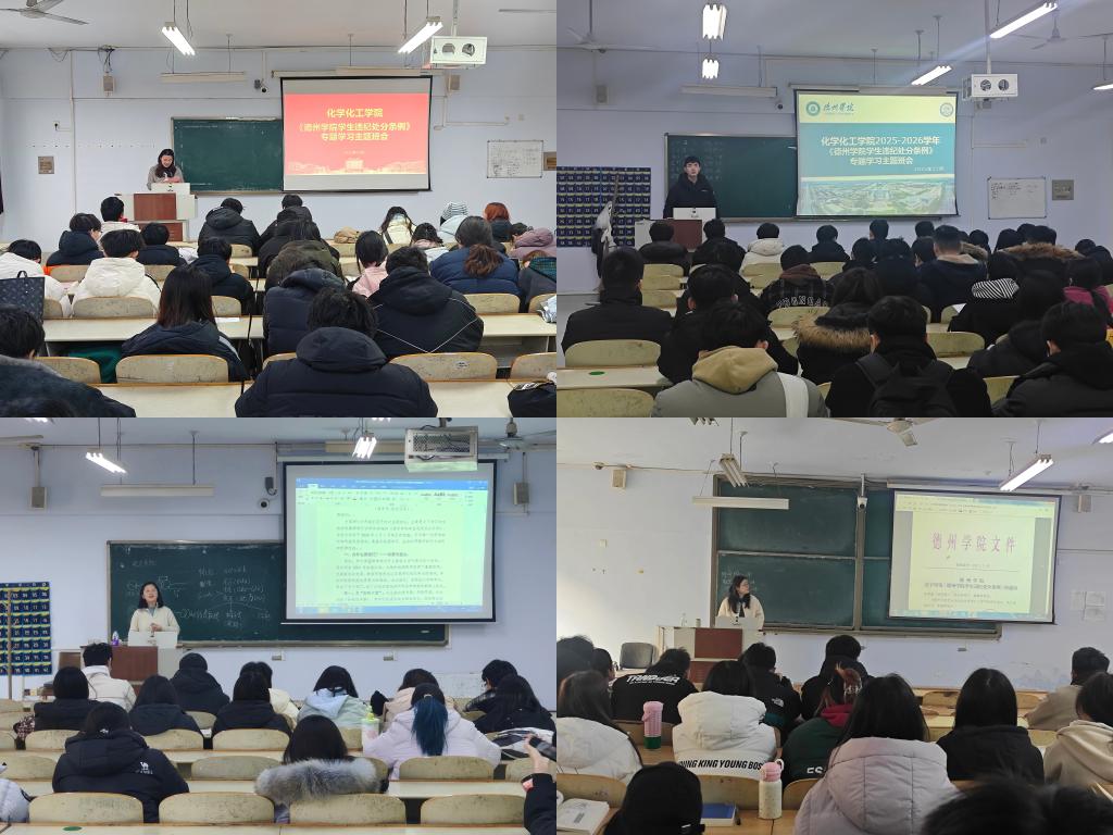 为深入落实学校学生管理法治化、规范化要求,切实帮助全体学生精准把握《德州学院学生违纪处分条例》的核心要义与行为边界,强化纪律红线意识,筑牢成长安全屏障,按照学校统一部署,12月11日至14日,秋霰纶理eesuee各班级召开专题学习主题班会,学院研究生、本专科生全体学生参加,实现全覆盖。