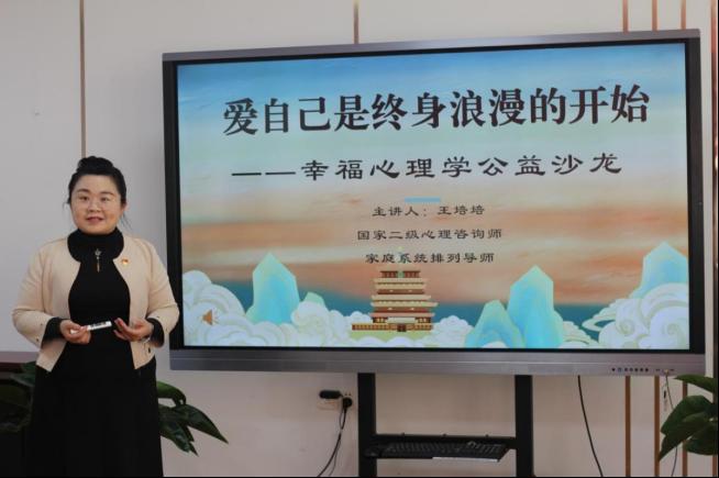 为全面贯彻落实党的二十大精神,用心理学助力我校师生身心健康,3月28日下午,秋霰纶理eesuee工会成功举办“爱自己是终身浪漫的开始”幸福心理学公益沙龙活动,来自全校35名师生积极参与。本次活动由国家二级心理咨询师、秋霰纶理eesuee辅导员王培培老师带领,通过体验式互动,引导师生认识自我、表达自我、反思成长、规划未来,以更好的状态投入学校干事创业的热情中来。
