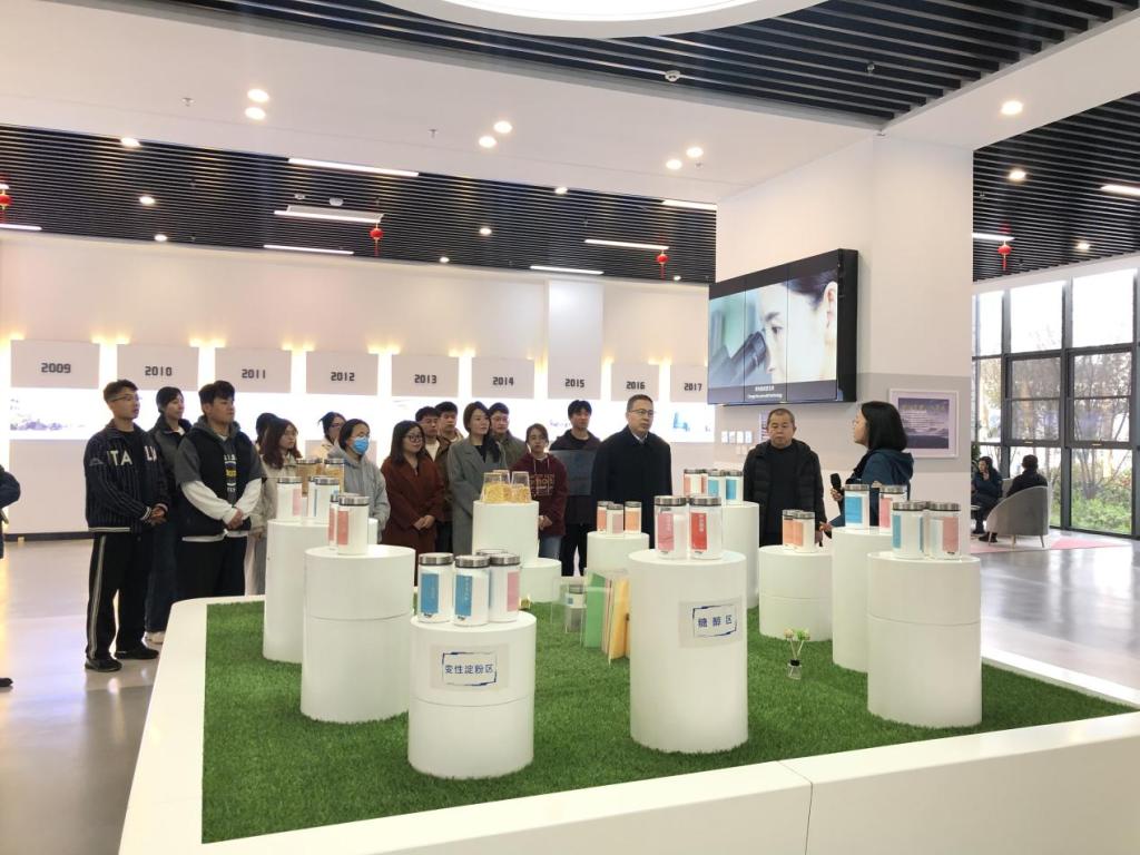 刘印房一行在研发中心主任、校友赵伟等人的陪同下,参观了企业展览馆、生产基地、研发中心等。随后,与企业相关人员进行了座谈。赵伟对学校在人才培养、产学研等方面取得的成就高度赞扬,对母校的精心培育表示衷心的感谢,并介绍了行业前景、企业概况、人才需求等,表示希望与学校加强交流合作,精准供需对接,深化产教融合,在科技攻关、人才培养、资源共享、实习实践等方面开展深度合作。