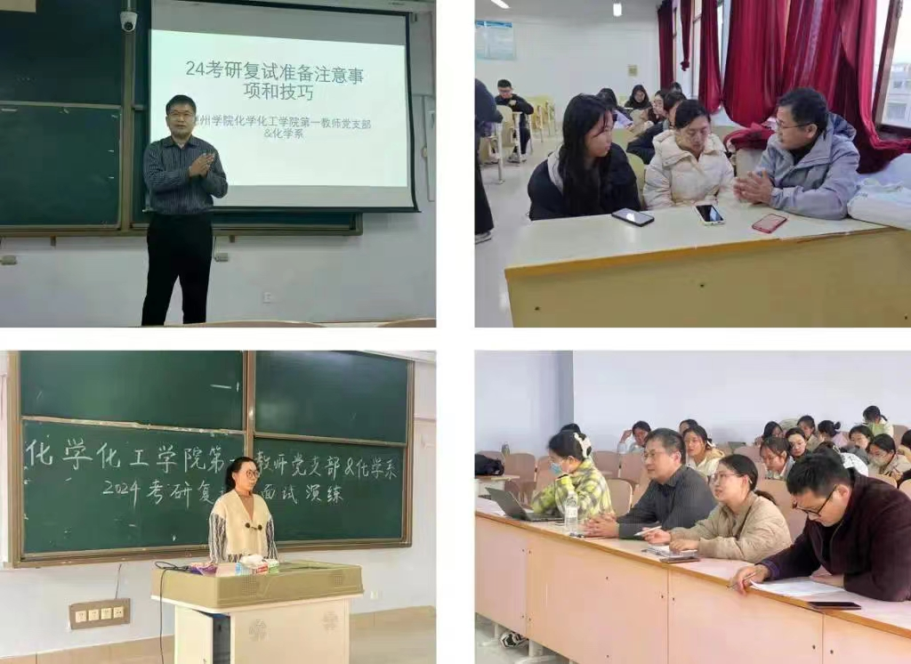 学院重视加强考研前期宣传动员、中期专业课知识指导、后期复试和调剂经验传授,把考研指导贯穿学习全过程。邀请往届考研学子进行经验分享,切实给考研学生提供研究生初试、复试、调剂方面的指导,帮助考研学生增强信心。专业指导老师对学生考研复习专业课进行指导,精准助力考研复习最后冲刺。国家线公布之后,综合学生初试成绩并结合各校面试要求,分别从自我介绍、文献翻译、专业知识问答、综合素质测试等四个方面对考研学生进行多轮模拟训练,并开放实验室,进行试验操作指导,全程给予针对性帮助和建议。