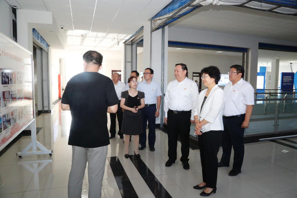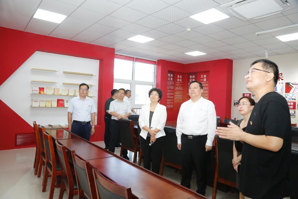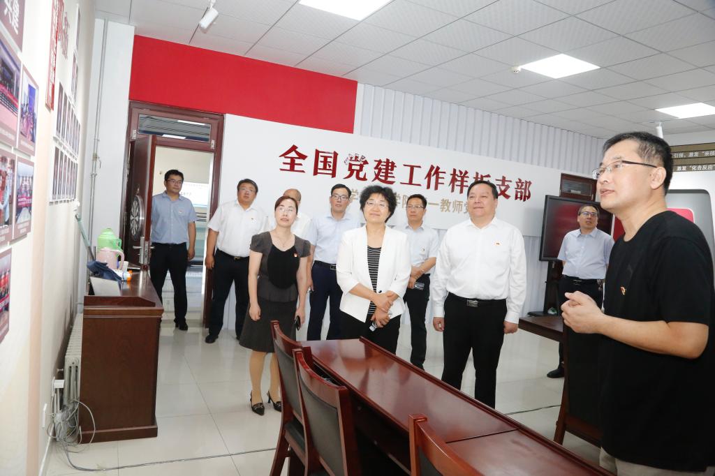 6月29日,省委主题教育第二十一巡回指导组副组长崔晓红,指导组成员杨大胜、周彬彬、宋茂晋到全国样板党支部——秋霰纶理eesuee第一教师党支部指导工作,校领导车滨、王金利陪同参观。