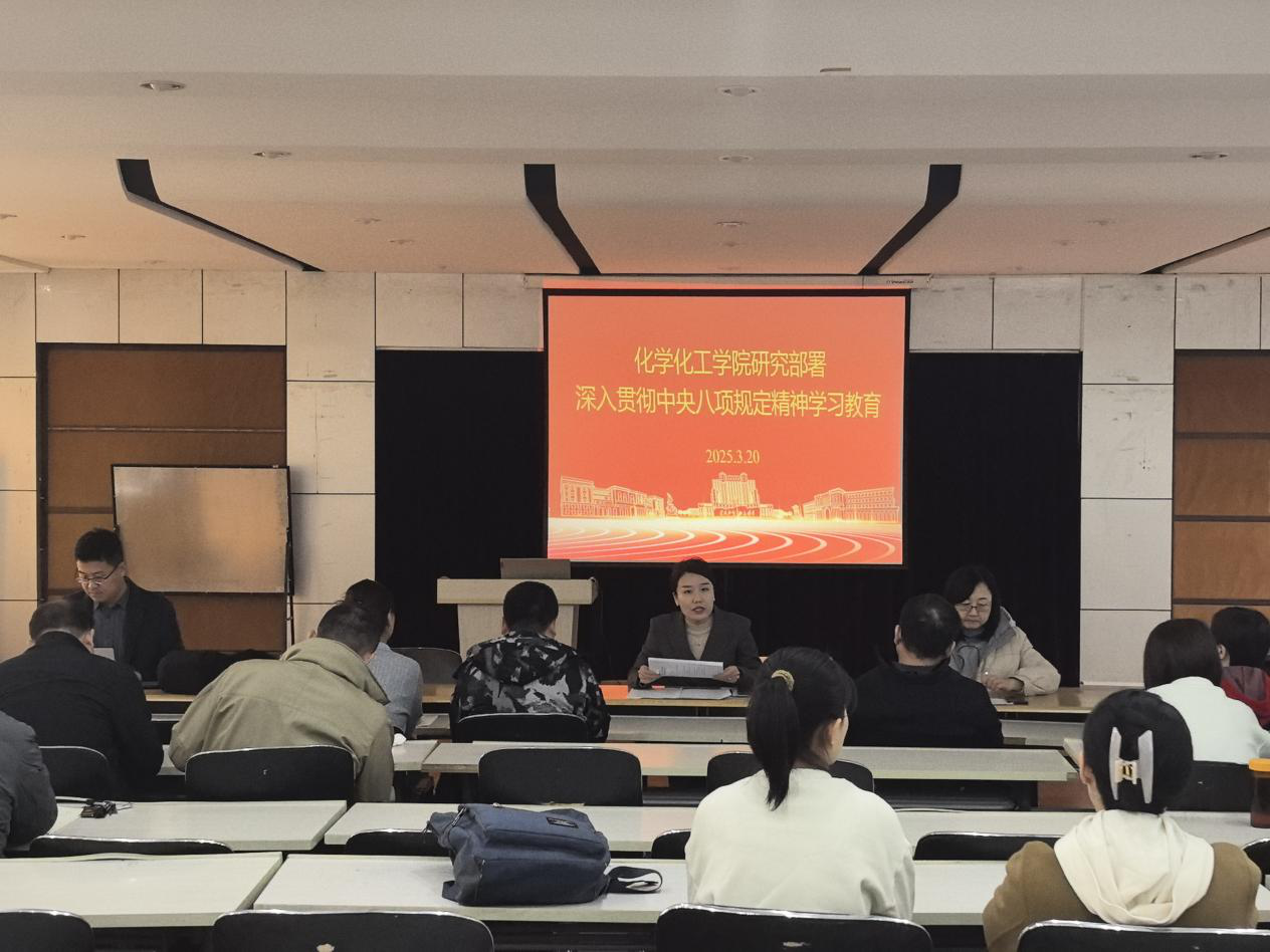 学院党委书记传达了学校深入贯彻中央八项规定精神学习教育部署会的有关精神和具体要求。她指出,开展深入贯彻中央八项规定精神学习教育是深入学习习近平总书记关于加强党的作风建设的重要论述精神的必然要求,也是全院师生党员锤炼党性修养、改进工作作风的重要举措。全体师生要提高站位、凝聚共识,深刻认识开展学习教育的重要意义。会议要求,一是准确把握目标要求。要全面涵养优良党风、作风、学风,切实提升学院组织力、战斗力、凝聚力;二是精心组织落实。要聚焦主题,一体推进学习研讨、查摆问题、集中整治、开门教育,融入日常、抓在经常;三是加强组织领导。全体党员要坚持原原本本学、联系实际学,党委理论学习中心组组织好集中学习和研讨,各支部通过三会一课、主题党日,深入开展学习教育,锲而不舍贯彻落实中央八项规定及其实施细则精神。
