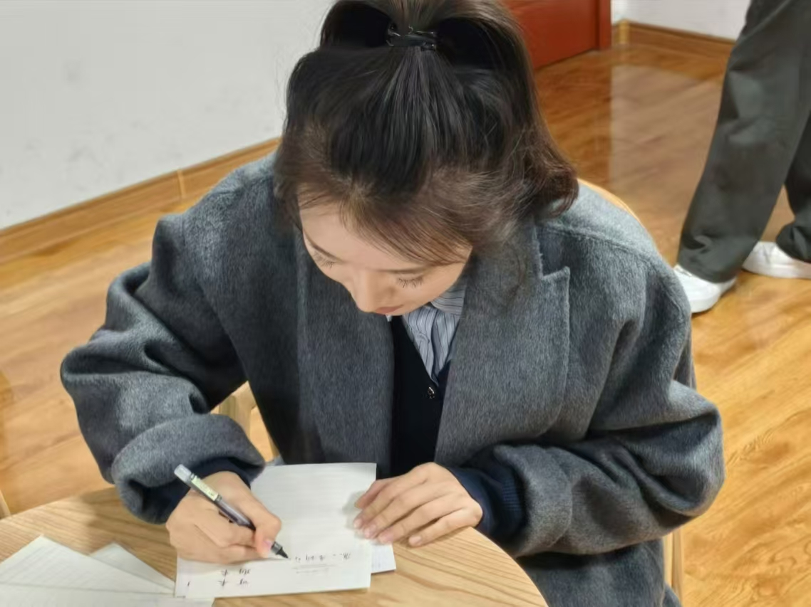 随着《一路生花》音乐缓缓响起,此次活动进入最后一个环节——“未来之约”。负责人为每位考研学生发放精美明信片,同学们伴随着动人的旋律,在明信片上写下自己的考研誓言。这些明信片承载着他们的梦想和信念,将成为他们在考研冲刺阶段的精神支柱和动力源泉。