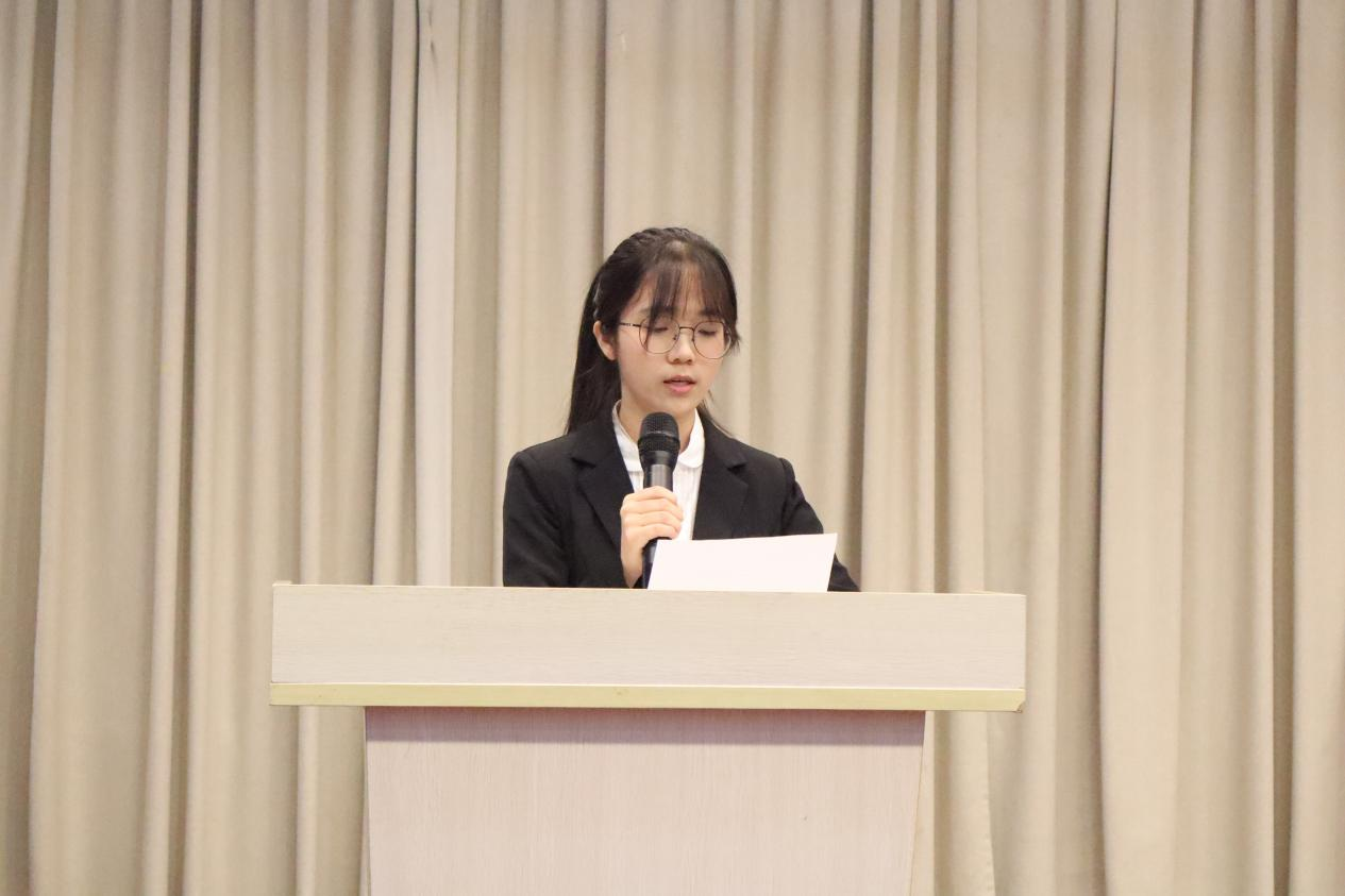 学生工作办公室主任宣读《秋霰纶理eesuee强化文明行为养成 培育优良校风学风“十个一工程”专项行动实施方案》,她详细介绍了本次方案的主题、目标、内容以及具体安排。学院将开展一系列丰富多彩的活动,激发学生学习兴趣,增强学生文明修养。