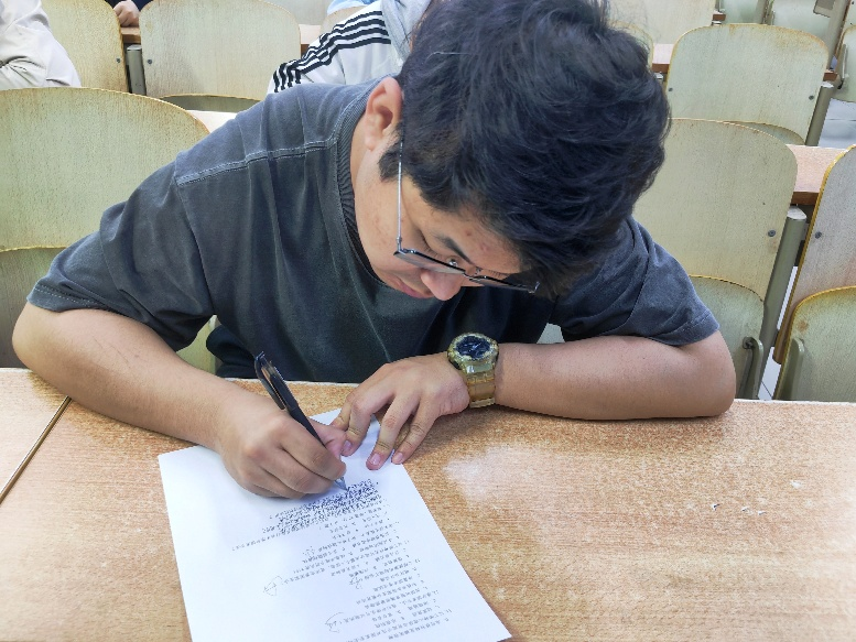 活动伊始,负责人强调国家安全与心理健康的重要意义,引发同学们的深刻思考,也为竞赛营造浓厚氛围。竞赛环节,负责人下发知识竞赛试卷,参赛选手迅速投入紧张作答。试题内容涵盖国家安全各领域知识以及心理健康相关要点,全面考察同学们的知识储备与综合素养。考试结束后,同学们有序离场。