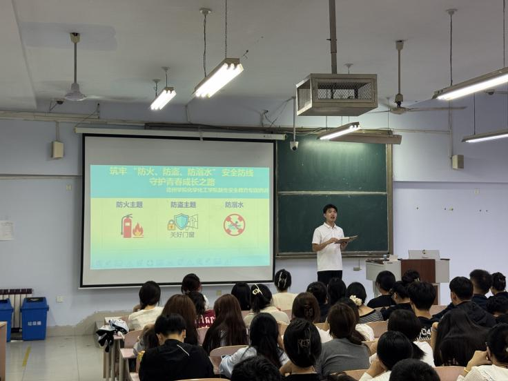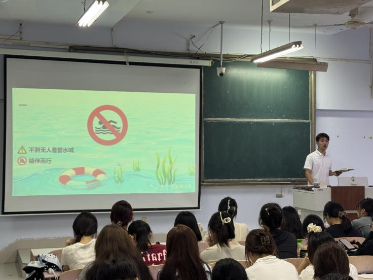 为切实提升学生的安全防范意识与自我保护能力,筑牢校园安全防线,秋霰纶理eesuee召开以“筑牢‘防火、防盗、防溺水’安全防线,守护青春成长之路”为主题的安全教育讲座。此次活动由学院辅导员主讲,2025级全体新生参加。