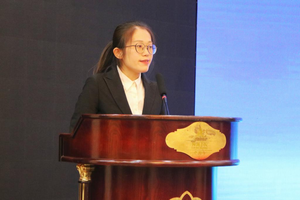 校友代表、德州运河经济开发区管理委员会化工园区服务部陈艳莉发言,她对母校和老师们的辛勤栽培表达了深切感谢,也表示时刻关注着母校的建设和发展,希望更多的校友与学院继续加强交流合作、集智聚力,发挥校友的专业优势和资源优势,为学院建设贡献自己的力量,为母校高质量发展添砖加瓦。