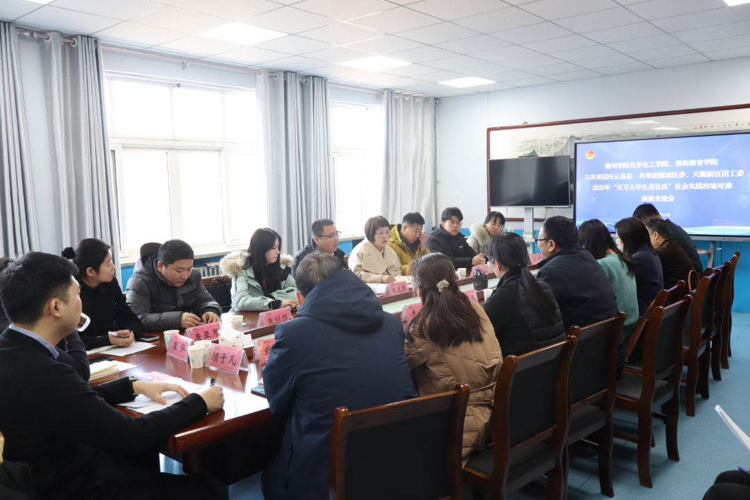 为深入推动校地资源共享、优势互补,助力大学生实践成长与地方经济社会发展,2025年2月23日,秋霰纶理eesuee与共青团庆云县委开展2025年“百万大学生进社区”社会实践校地对接座谈会。庆云县团委主要负责同志、秋霰纶理eesuee党政领导班子成员、有关负责同志参加会议。