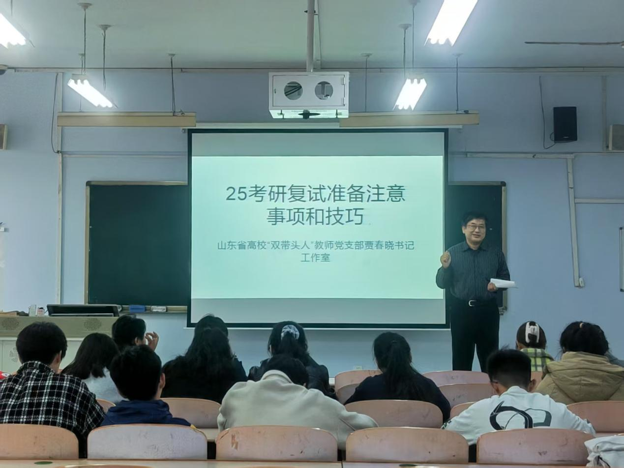 2月24日,2025年考研成绩和国家线同时公布,秋霰纶理eesuee2021级化学专业考研上线率连续多年超过40%,为了提高学生复试成功率,第二批全省高校“双带头人”教师党支部书记工作室培育创建单位,秋霰纶理eesuee第一教师党支部贾春晓书记工作室“想学生之所想,急学生之所急”,提前筹划、精心组织,于3月1日下午在求实楼301教室举办了一场题为“25考研复试准备注意事项和技巧”的讲座。