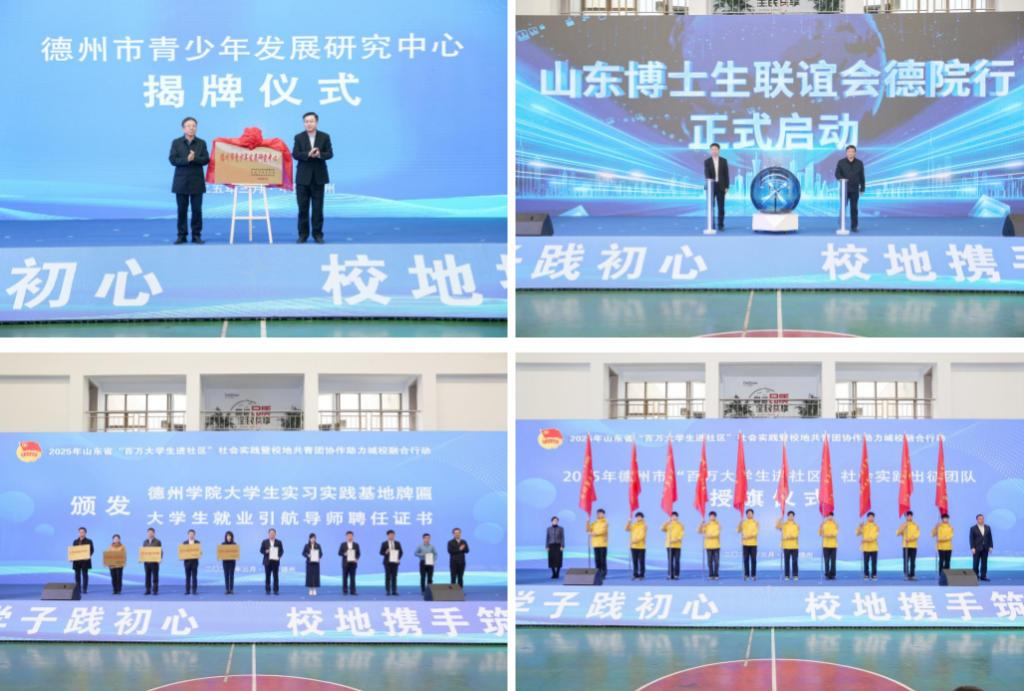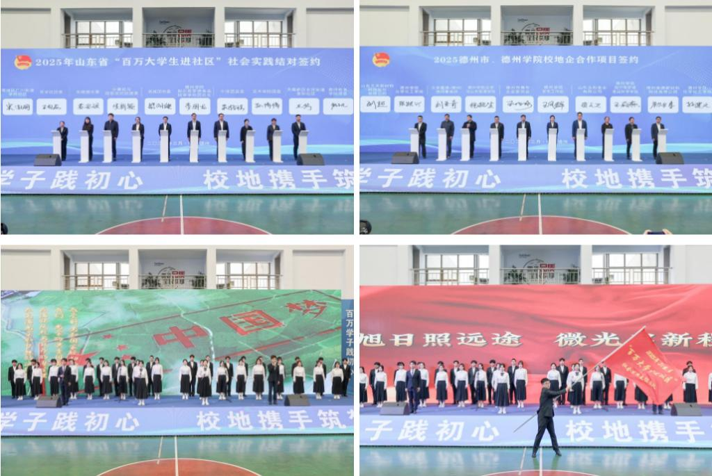 3月1日,2025年山东省“百万大学生进社区”社会实践暨校地共青团协作助力城校融合行动启动仪式在德州学院举行。本次启动仪式的核心目的在于整合校地资源,深化社会实践与人才培养协同机制。德州学院充分发挥智力密集优势,在科技成果转化、科创平台建设、产教融合赋能等多个领域与德州展开深度合作与协同创新,为德州的高质量发展注入了强大动能。秋霰纶理eesuee第一教师党支部“全国高校‘双带头人’教师党支部书记‘强国行’专项行动团队”参与的2个校地企合作项目在现场成功签约。