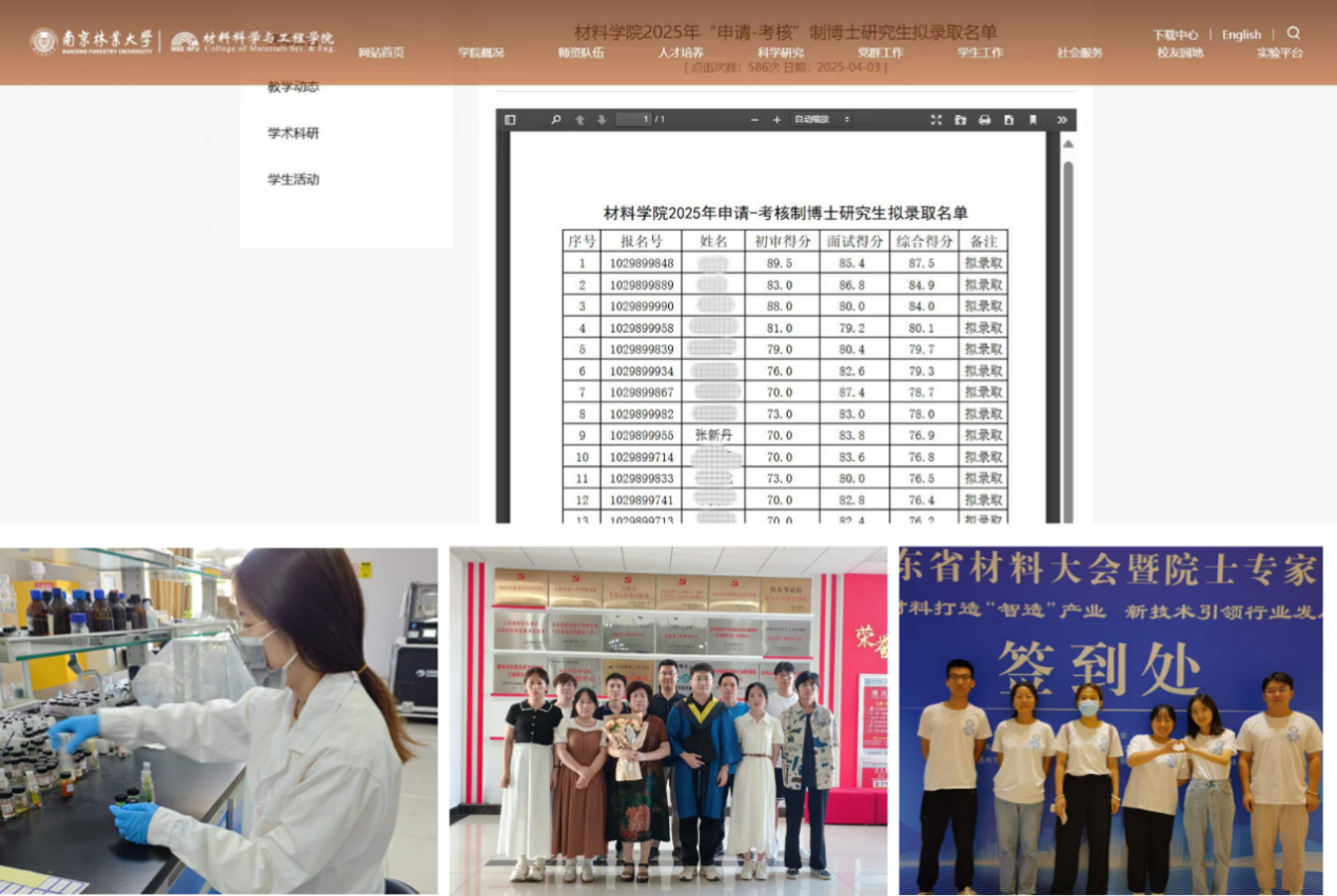近日,我校与山东理工大学联合培养的研究生张新丹同学成功通过南京林业大学(国家"双一流"建设高校)博士研究生申请,拟录取为2025级博士研究生。张新丹本科就读于我校2018级环境工程专业,2022年通过联合培养项目进入我校秋霰纶理eesuee配合物功能材料实验室开展研究工作。